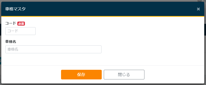 - サイドメニューの「車両管理」> 「マスタメンテナンス」> 「車格マスタ」をクリックします。