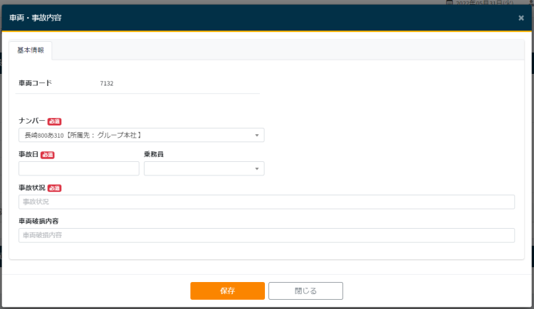 - ナンバー:必須項目です。事故を起こした時点のナンバーを選択してください。