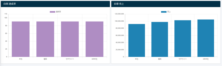 対象年月の部門毎の達成率と売上状況の確認をすることができます。