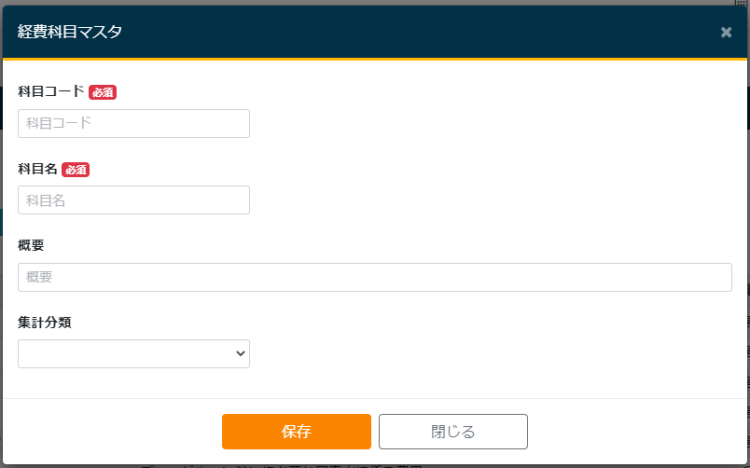 - 集計分類:集計分類を選択します。分析等で経費の集計を行う際に使用します。