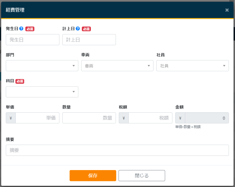 - 車両:車両を選択します。※経費が発生した車両を選択してください。
