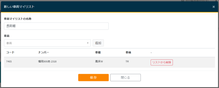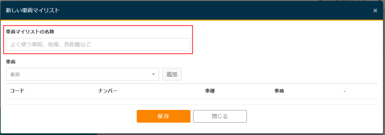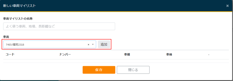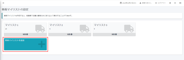 - 車両マイリストの設定画面が表示されます。車両マイリストを追加をクリックします。