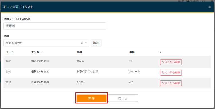 車両マイリストを設定すると、配車表で任意の車両に絞り込んで表示する事ができます。