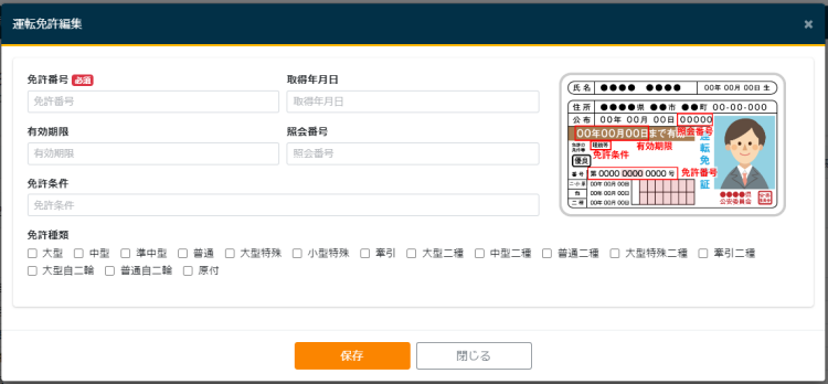 運転免許情報を入力したら下部にある保存ボタンを押します。