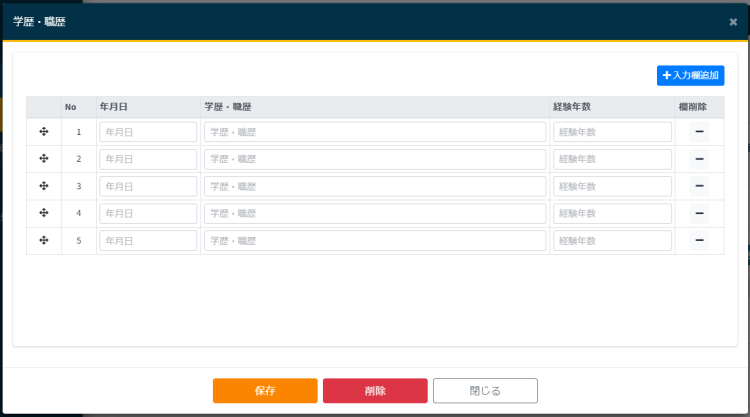 - 年月日:対象の学歴・職歴の開始日付を入力します。