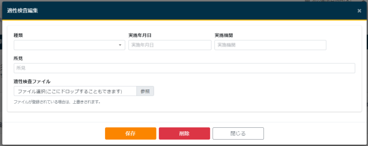 - 実施年月日:適正検査を受けた日付を入力してください。
