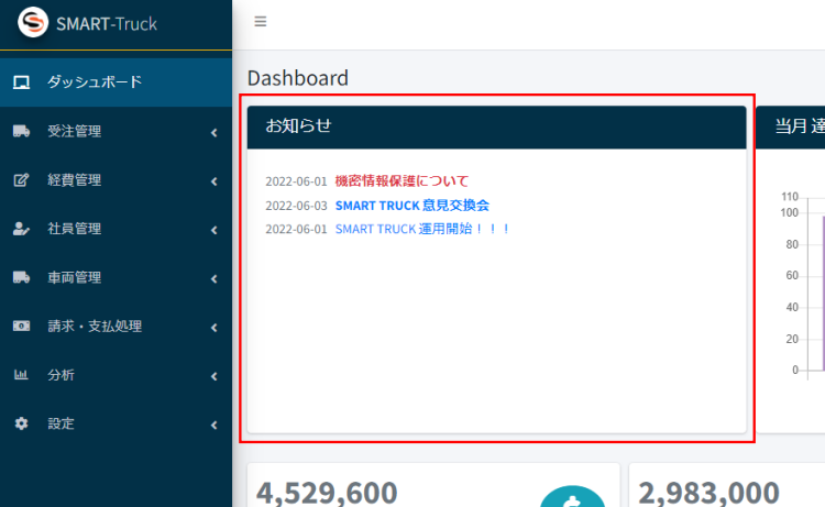 - 本日の取扱売上・・・本日付の傭車運行の売上総額です。※1