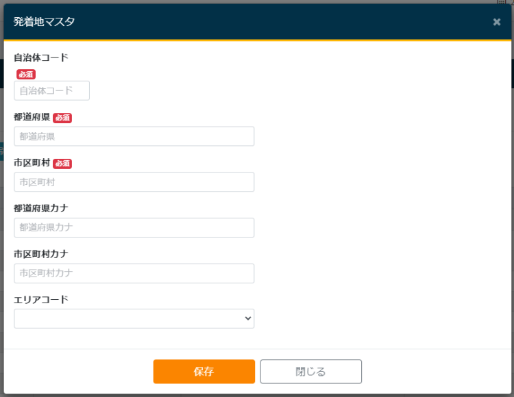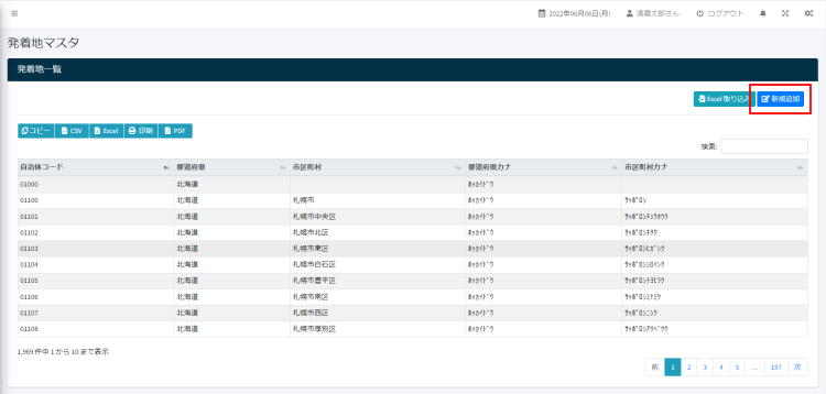 - 発着地一覧画面の右上にある新規追加ボタンをクリックします。