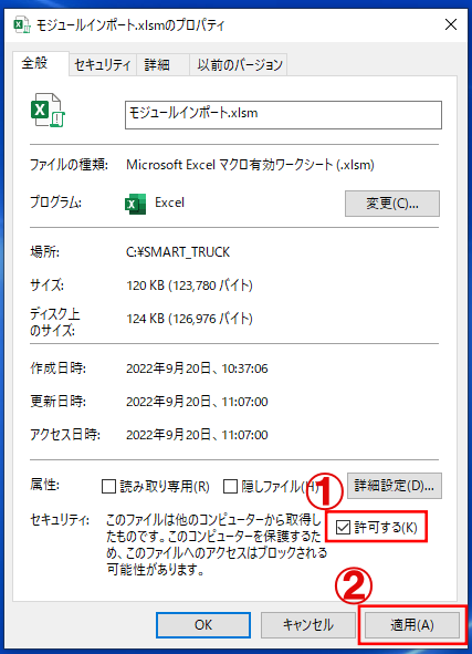 運行取込みエクセルを開こうとしたときや、運行取込みエクセルのアップデート時のモジュールインポートエクセルでマクロのセキュリティアラートが出ることがあります。