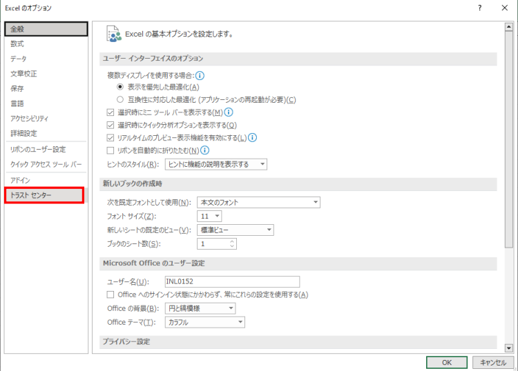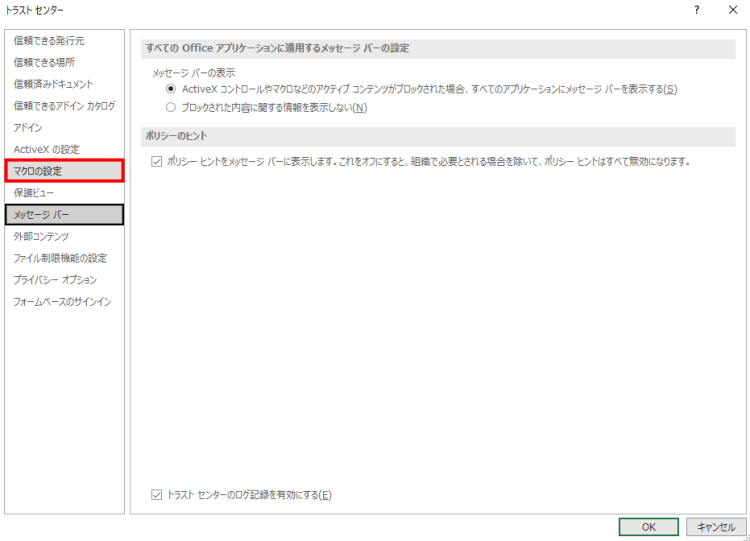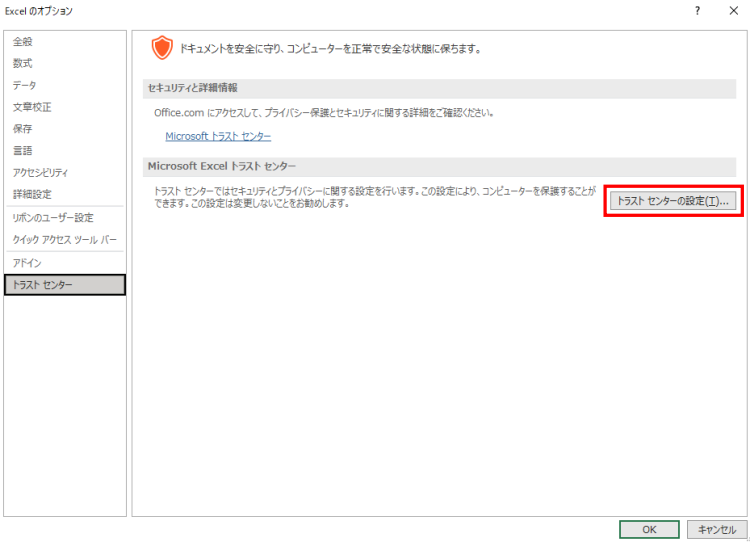 2.エクセルのトラストセンターでセキュリティ設定を行う